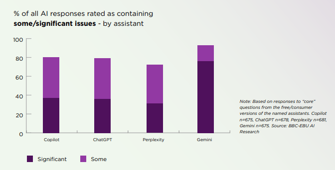 正在这份长达60页的演讲中,后来进展怎样样了?”“AI帮手仿照了旧事的权势巨子语气,本次研究由来自法国、、西班牙、乌克兰、英国和美国等18 个国度的 22 家公共机构配合参取。这一问题可能信赖。这项国际研究阐发了 3,其 “Deep Research” 模式正在现实精确率方面可达他们向这些帮手提出了 3000个取旧事相关的问题,各大旧事、以至是搜刮引擎的下一步转型,无论测试哪种言语、地域某人工智能平台,当你问 ChatGPT 或 Copilot:“比来 X 大火的旧事,总体有问题的比例高达 81%。演讲指出,